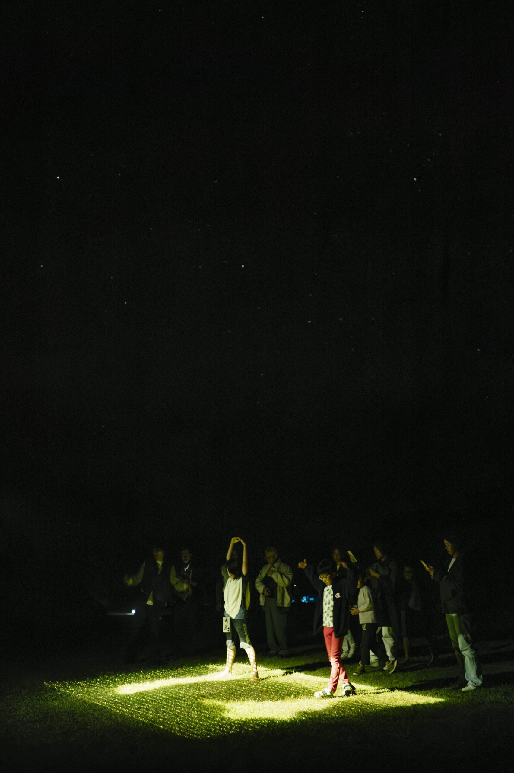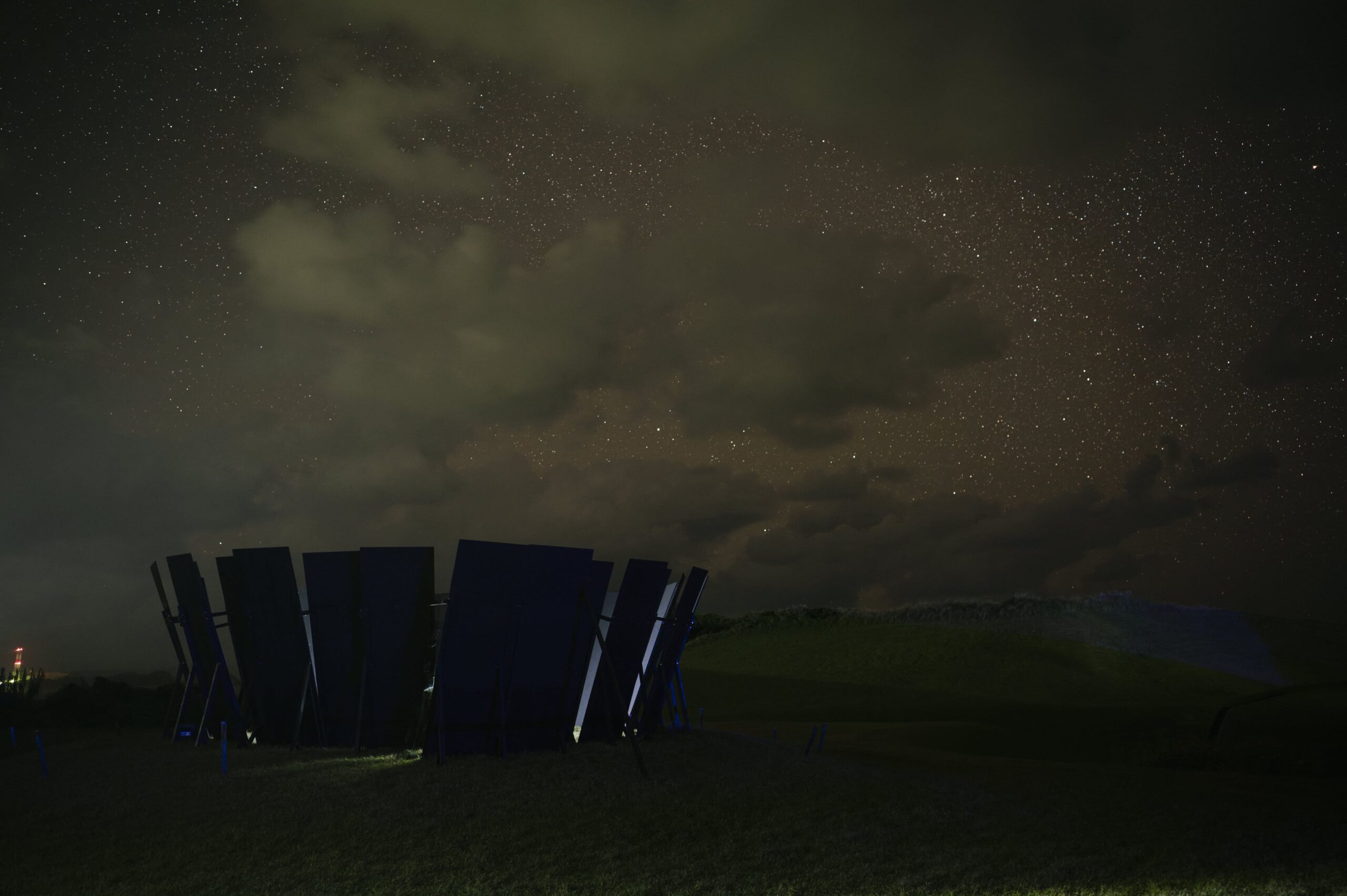 壁は外からの光を遮り、光害の少ない種子島の星空をより見えやすくします。壁の内側は種子島の砂鉄で仕上げられており、正八面体の磁鉄鉱の結晶は、光の動きと鑑賞者の動きによって瞬きます。