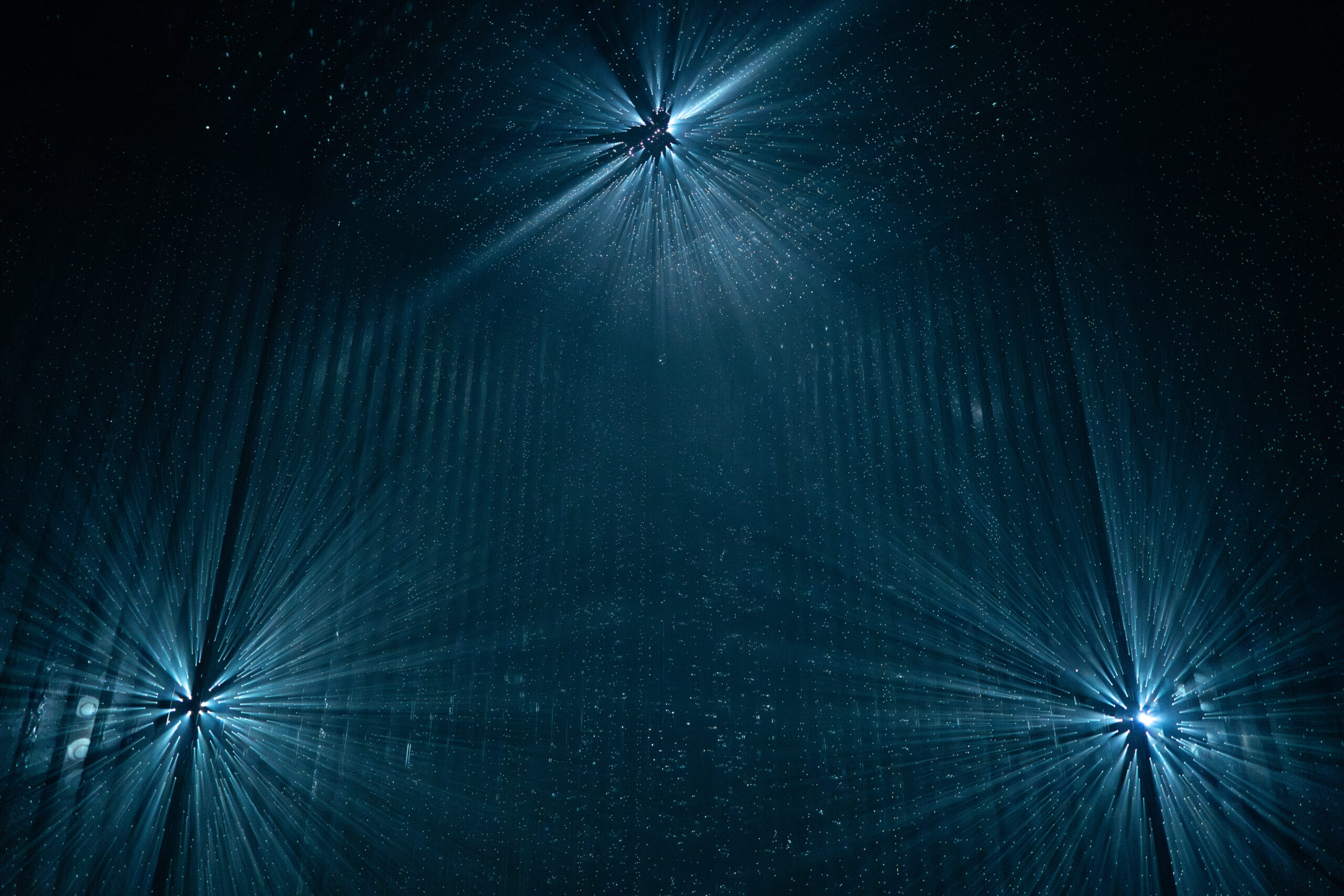 あらゆるものは空間の中に存在しますが、私たちは空間そのものを見ることはできません。この作品は、空間内を飛び回る無数の光点によって、空間を知覚可能な存在に近づけようとする試みです。